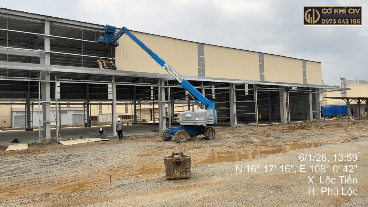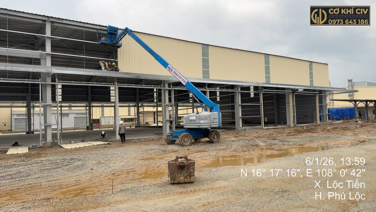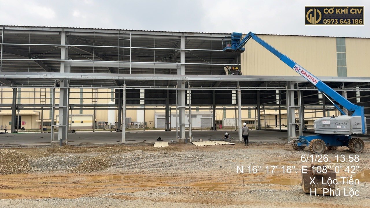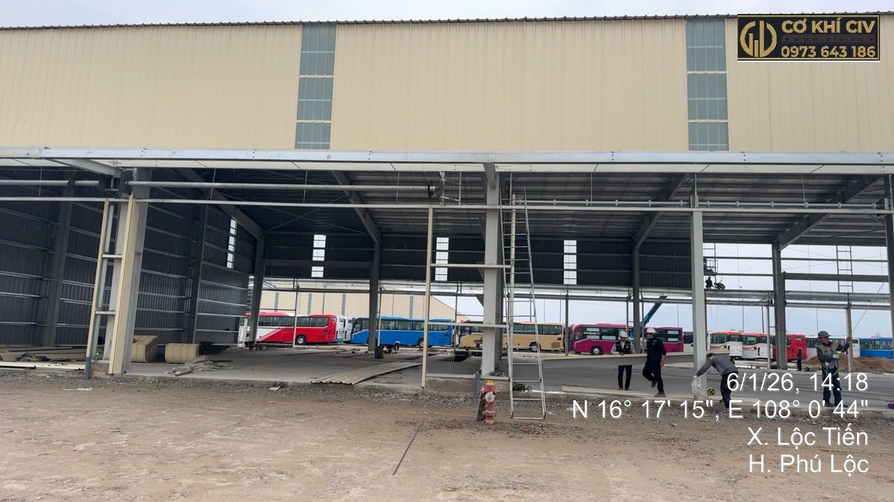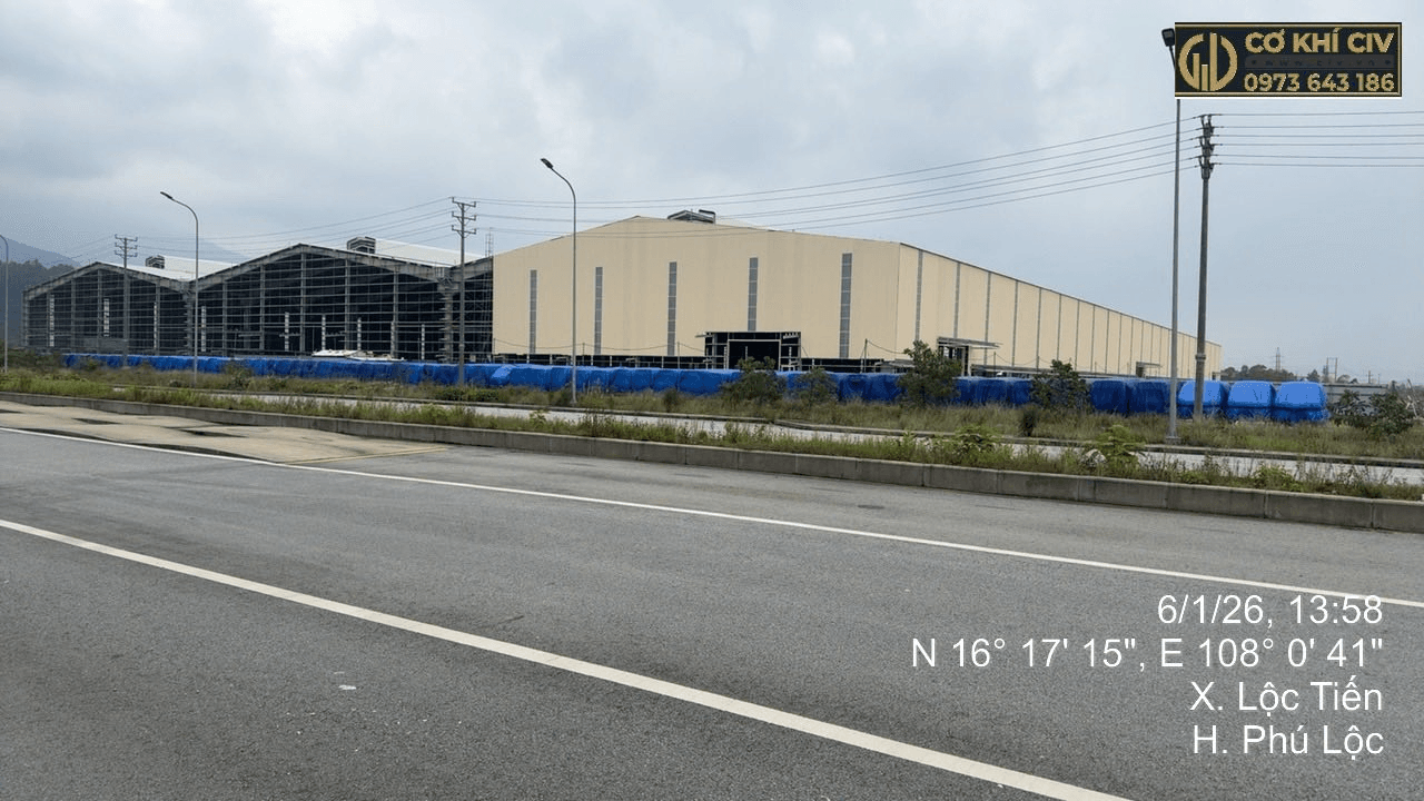 CIV đã và đang triển khai dự án thi công nhà xưởng tại Huế, cụ thể tại xã Lộc Tiến, huyện Phú Lộc, tỉnh Thừa Thiên Huế, đáp ứng tiêu chuẩn kỹ thuật khắt khe cho công trình công nghiệp quy mô lớn.